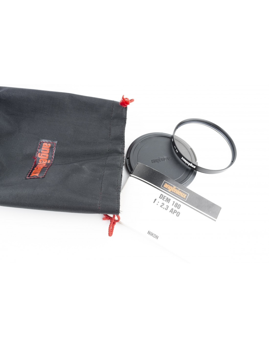 tappi, filtro uv Angenieux da 82mm, custodia morbida, manuale, cofanetto e scatola originale
