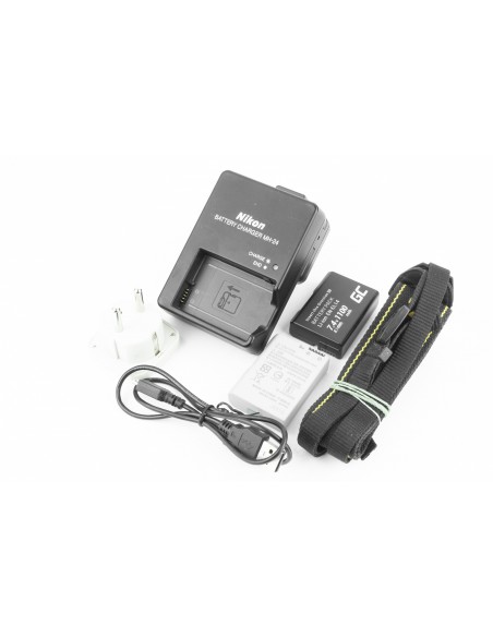 tappo corpo, carica batterie originale, cinghia, doppia batteria, cavo usb, scatola originale