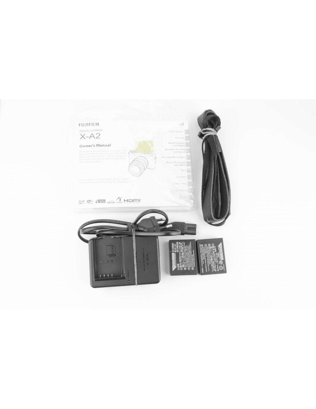 carica batterie, doppia batteria originale Fujifilm, cinghia, manuale
