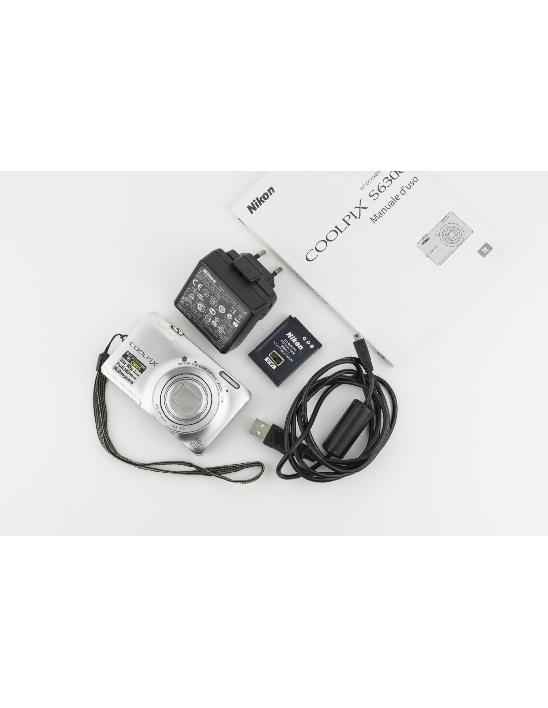 carica batterie e batteria originale, laccio da polso, manuale, scatola originale