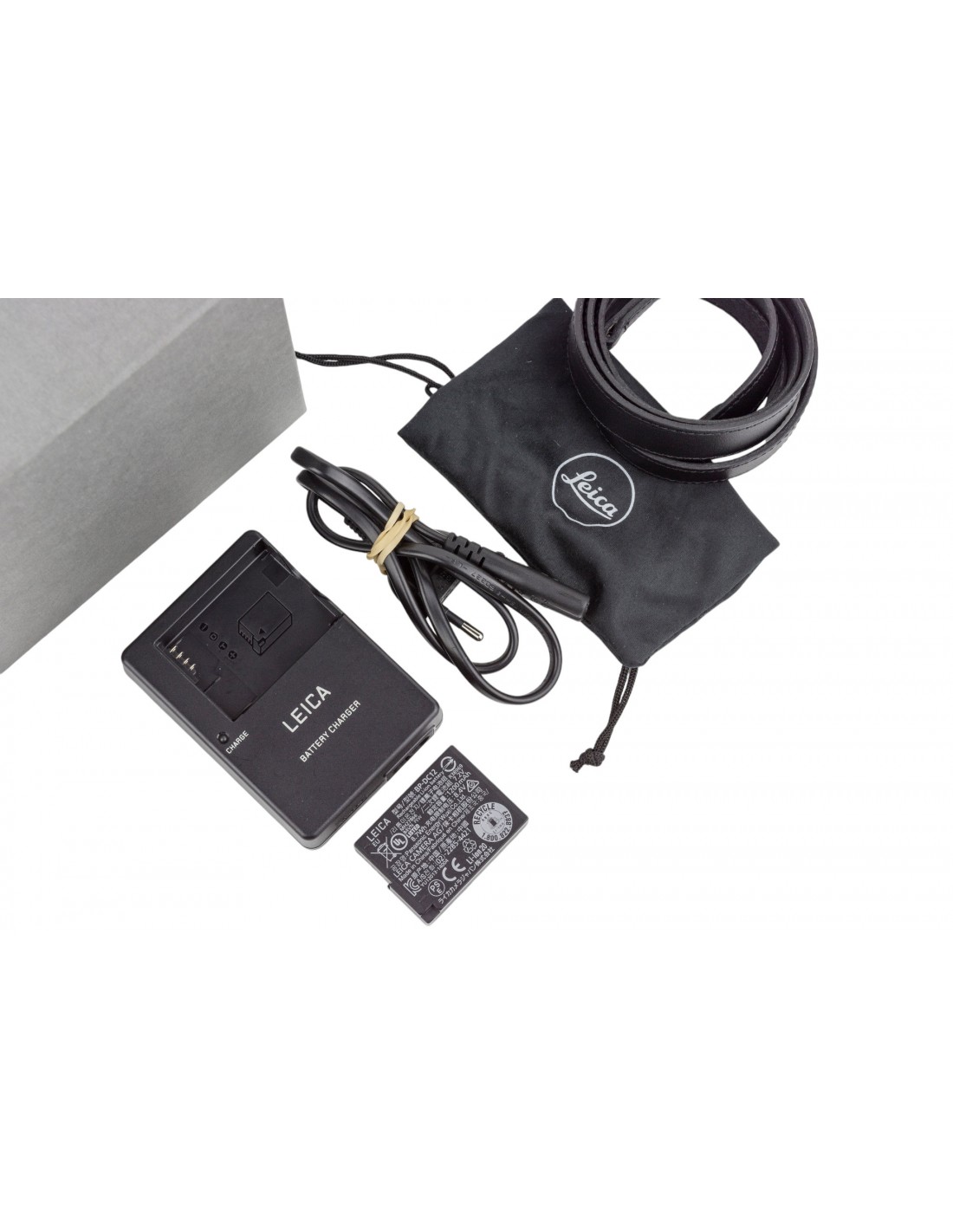 carica batterie e batteria originale, cinghia, imballi e scatola originale