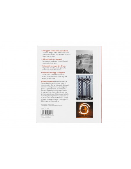 Un libro che racchiude tutto l'essenziale per padroneggiare la tecnica fotografica, realizzato da un grande professionista del settore, Michael Freeman, che vi ha condensato tutta la sua sterminata esperienza. La bibbia del fotografo è progettato come un vero e proprio corso. È strutturato in quattro sezioni che coprono tutti gli elementi essenziali per l'apprendimento della materia: esposizione, composizione, illuminazione ed elaborazione in post-produzione. Ogni sezione è suddivisa in diverse unità di apprendimento, al termine delle quali troverete delle 'Missioni' da compiere. Il capitolo dedicato all'Esposizione vi insegnerà a impostare correttamente la fotocamera, ma anche a pensare in maniera autonoma, piuttosto che seguire una qualsiasi idea di correttezza predefinita. L'Illuminazione segue a ruota, perché la luce è la materia con cui lavorano i fotografi. La sezione sulla Composizione è fondamentale poiché, in fase di apprendimento di una corretta organizzazione degli elementi all'interno dell'inquadratura, vi aiuterà a interrogarvi su cosa e perché state fotografando. Infine, l'elaborazione in Postproduzione valorizzerà al meglio la vostra ispirazione originale, purché sia sempre mirata a servire l'immagine e non a giocarci. E non dimenticate di compiere le Missioni per mettere in pratica ciò che avete appreso! In un pratico formato da portare sempre con sé, semplice da utilizzare e consultare sia sul campo sia davanti al computer, questo manuale ha un grande valore per chiunque si interessi di fotografia senza lesinare sulla qualità. Scoprirete come realizzare bellissimi ritratti, paesaggi perfetti o composizioni artistiche di grande effetto e troverete informazioni importanti, qualunque fotocamera abbiate a disposizione.