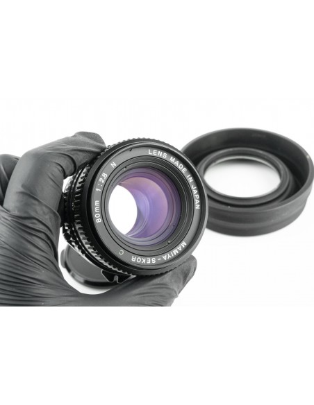 Mamiya Sekor C 80mm 1:2.8 N + paraluce originale in gomma + filtro uv + tappo