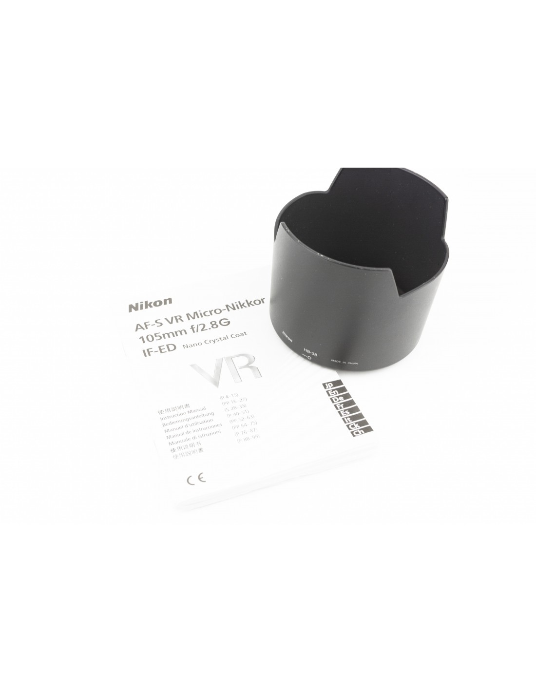 tappi e paraluce originale Nikon HB-38, manuale, scatola originale