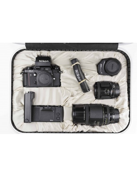 Nikon F3AF + AF Finder DX1: esemplare in eccellenti condizioni generali, meccanica ed elettronica in ordine, perfettamente funzionante in tutte le sue parti, alimentata da due batterie da 1,5v, tempi corretti, esposimetro reattivo e preciso, esposizione manuale o atuomatica a priorità dei diaframmi, tendina in ordine, mirino limpido, specchio perfetto, guarnizioni nuove. Tappo corpo originale e cinghia Nikon.