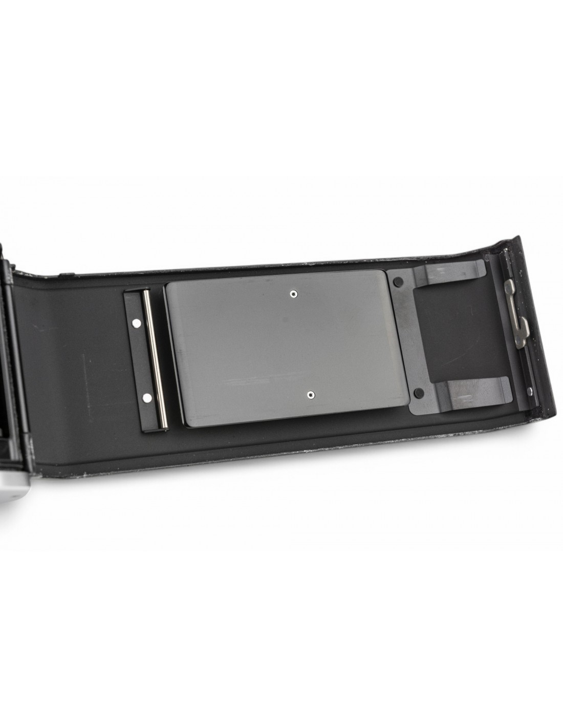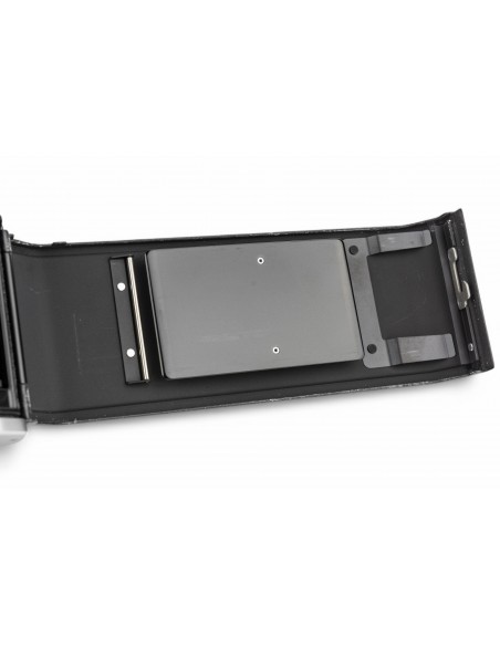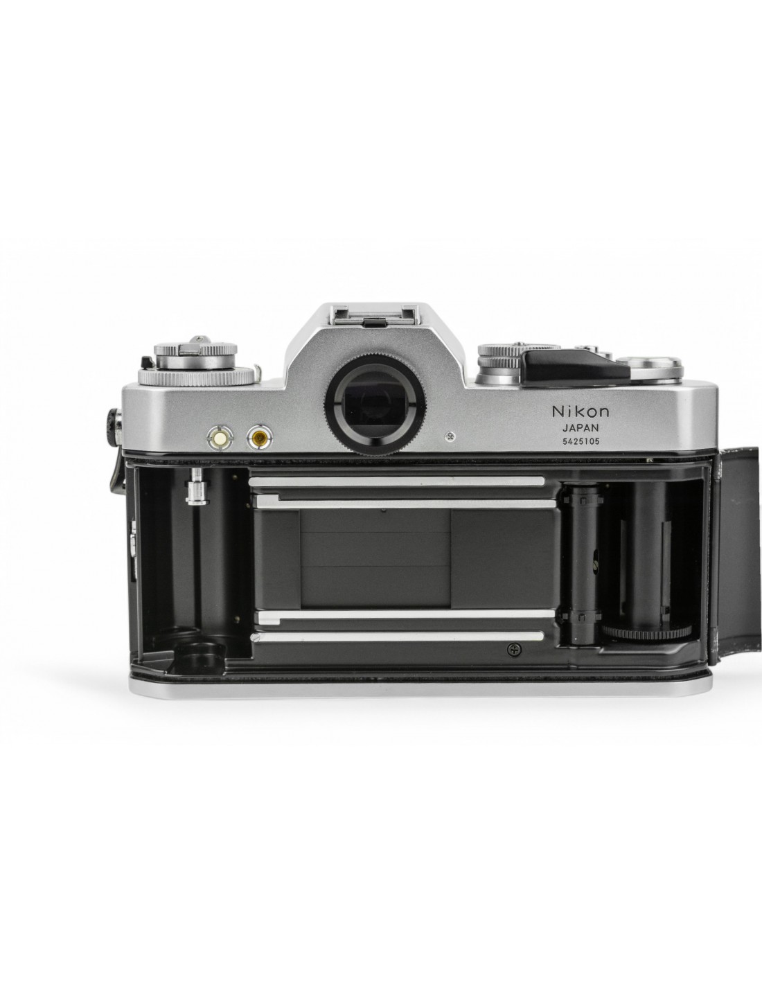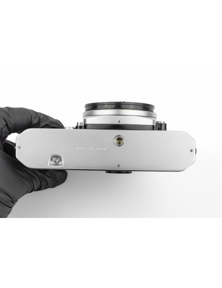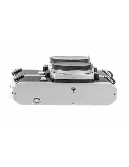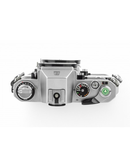 esposizione manuale oppure automatica a priorità dei diaframmi, alloggiamento batteria da 6v sotto lo specchio