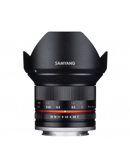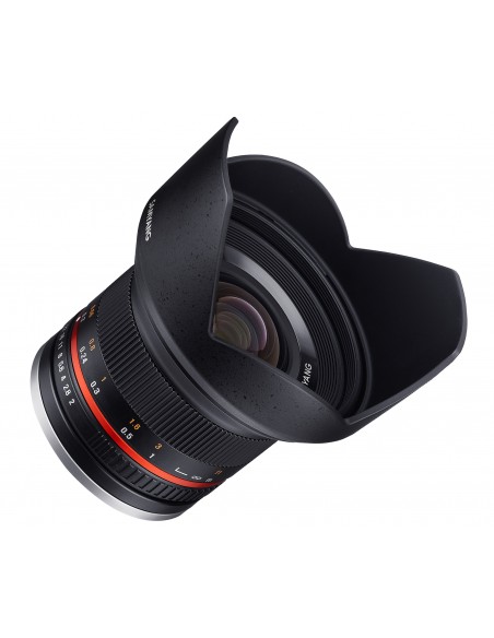 Questa lente Samyang super-grandangolare manual focus è stata ideata per camere mirror-less con sensore APS-C. Con una bassa distorsione e un angolo di campo molto ampio, i fotografi che desiderano scatti grandangolari, come paesaggistica ed architettura, possono essere soddisfatti. La sua apertura massima f/2,0 lo rende molto luminoso e permette di catturare immagini chiare e vivide, anche in condizioni di luce sfavorevole.